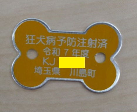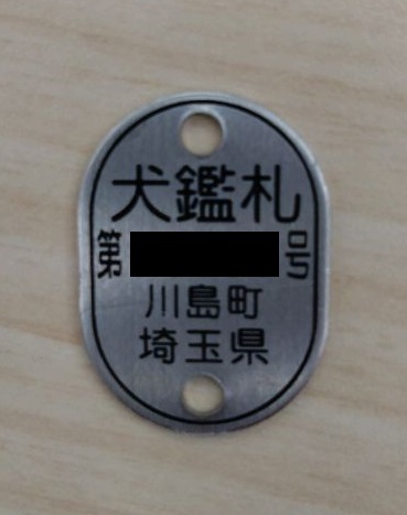 登録を受けた犬には、鑑札を交付しています。鑑札には、登録した市町村名と登録番号が刻印されています。
