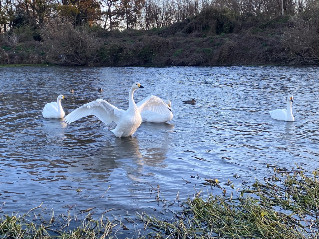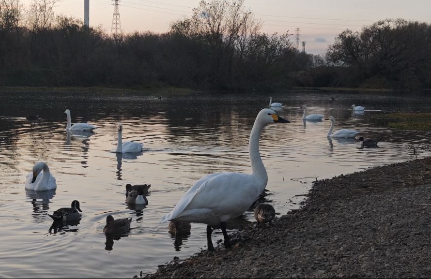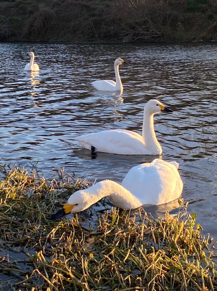 19日(水曜日)午後4時 白鳥4羽の飛来を確認しました。PHOTO1 PHOTO2