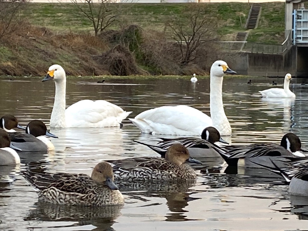 14日(金曜日)午前11時 白鳥4羽の飛来を確認しました。PHOTO1 PHOTO2