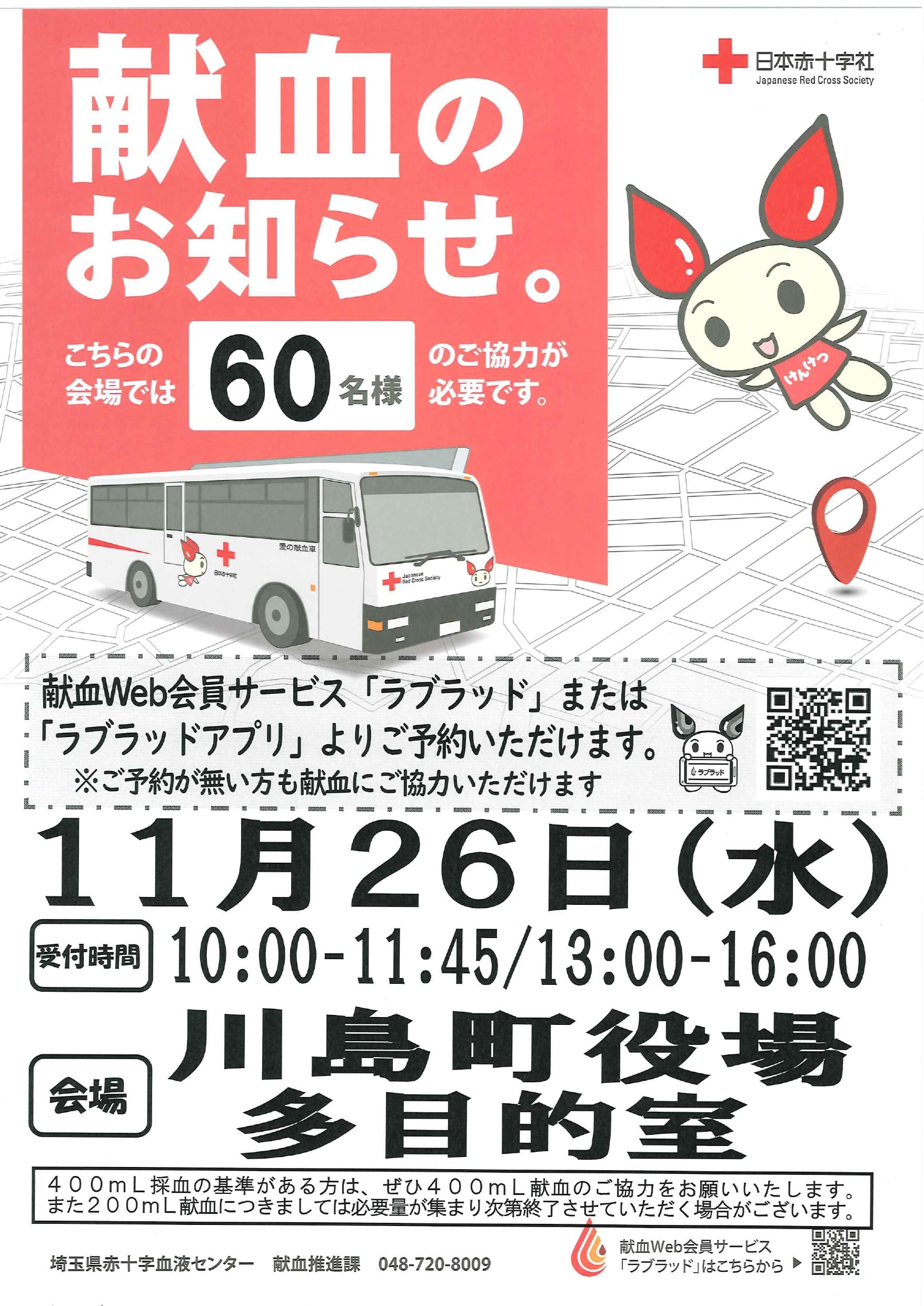 輸血に頼っている方がいること、献血によって救える命があることをご理解いただき、皆様の善意ある献血をお願いいたします。