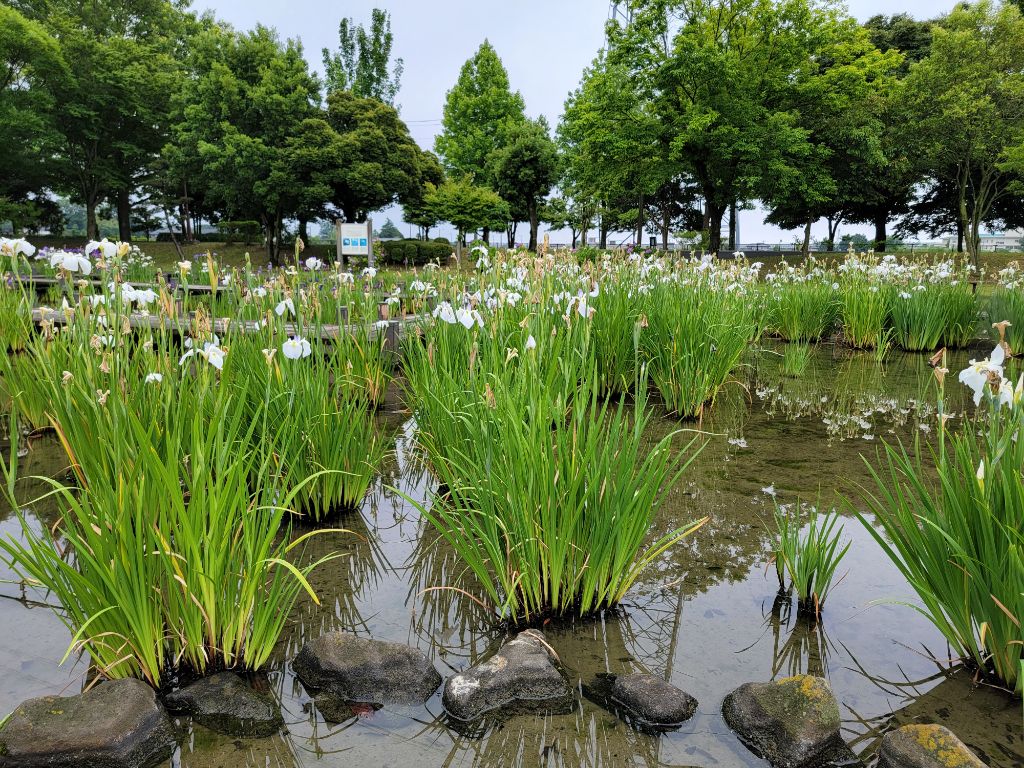 見頃を迎え、多くのハナショウブが咲いています。