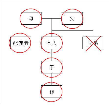 A1 本人、配偶者、直系尊属(父母、祖父母等)、直系卑属(子、孫等)であれば取