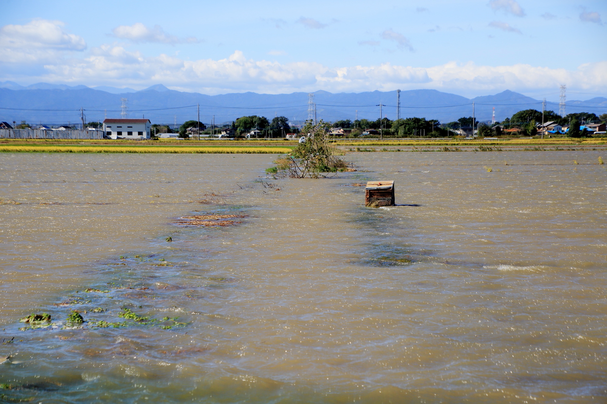 台風で増水した田んぼの様子(小見野)