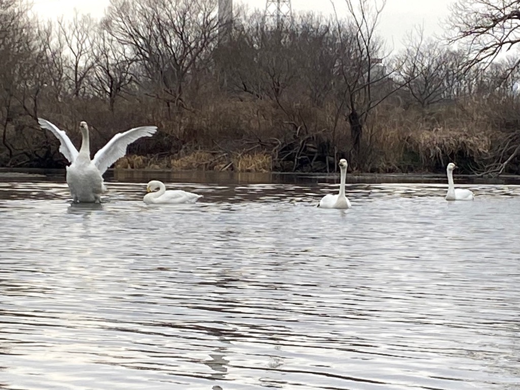 14日(金曜日)午前11時 白鳥4羽の飛来を確認しました。PHOTO1 PHOTO2