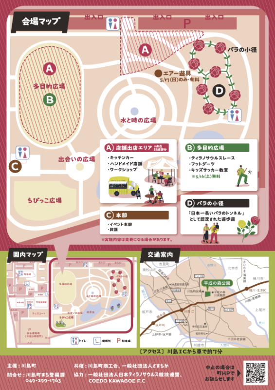 5月16日(土曜日)、17日(日曜日)に、平成の森公園おいて「かわじまスプリングフェスティバル」を開催します。たくさんの「キッチンカーや店舗」などが出店いたします。ぜひご来園ください。