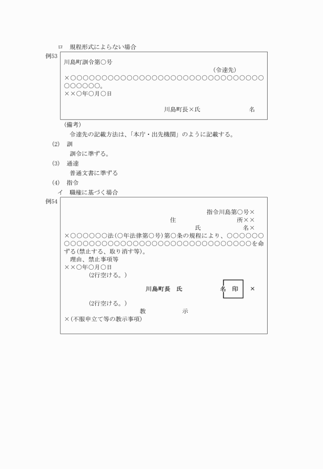 イ 訓 町長が所属機関又は職員に対し、権限の行使について指揮するため発する命令で細目的事項を内容とし、公表しないもの