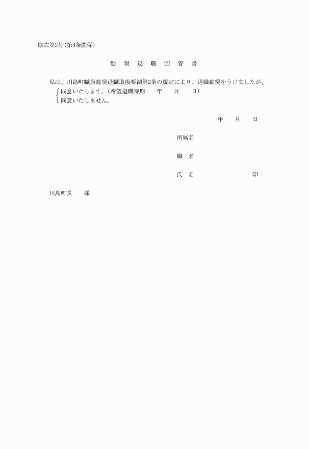 4 退職の勧奨に同意した職員は、9月末日までに退職願(様式第3号)を人事担当課長に提出するものとする。
