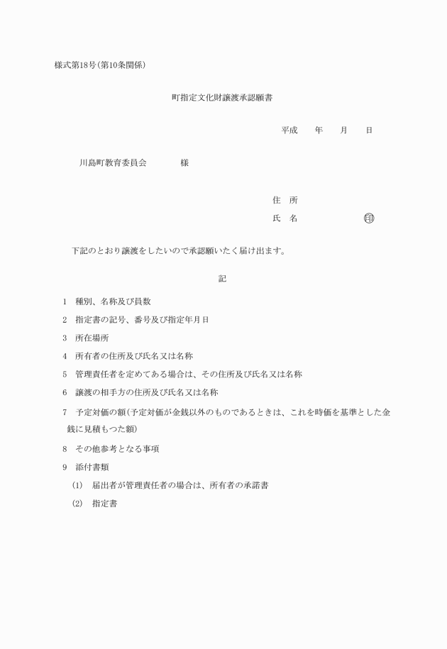 ○川島町文化財保護条例施行規則