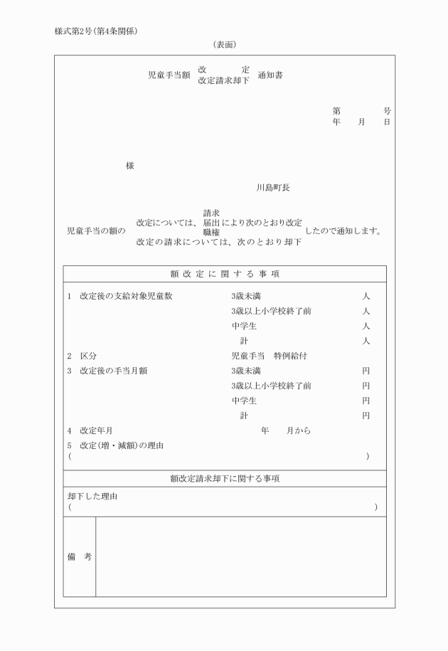 (2) 児童手当額改定・改定請求却下通知書 様式第2号
