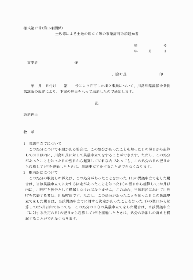 (4) 川島町土砂等による土地の埋立て等の規制に関する条例施行規則(平成7年川島町規則第20号)