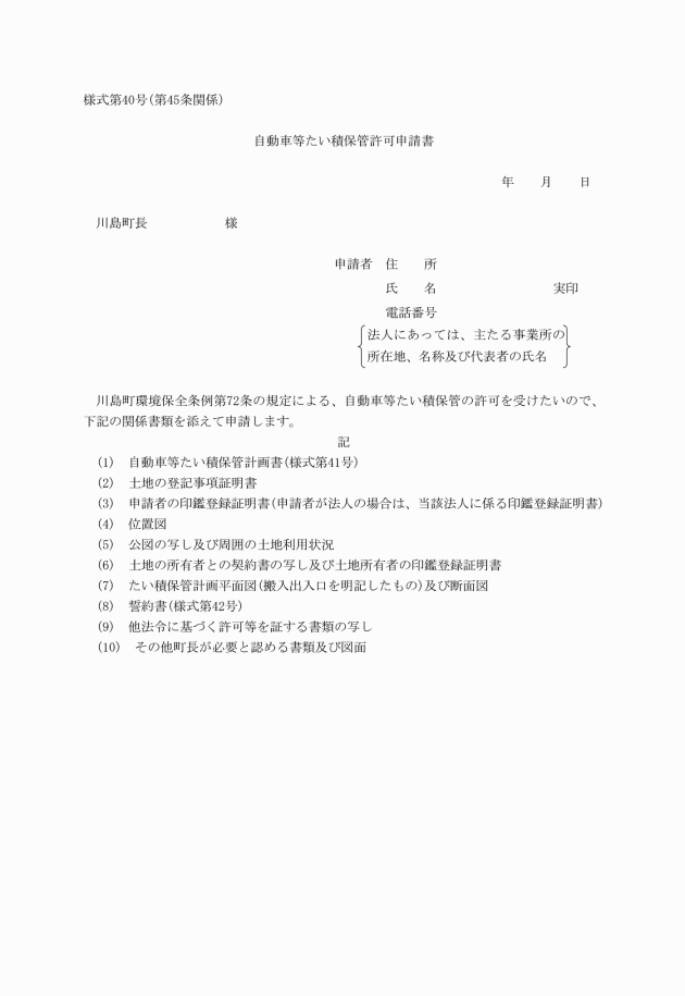 (1) 自動車等たい積保管計画書(様式第41号)