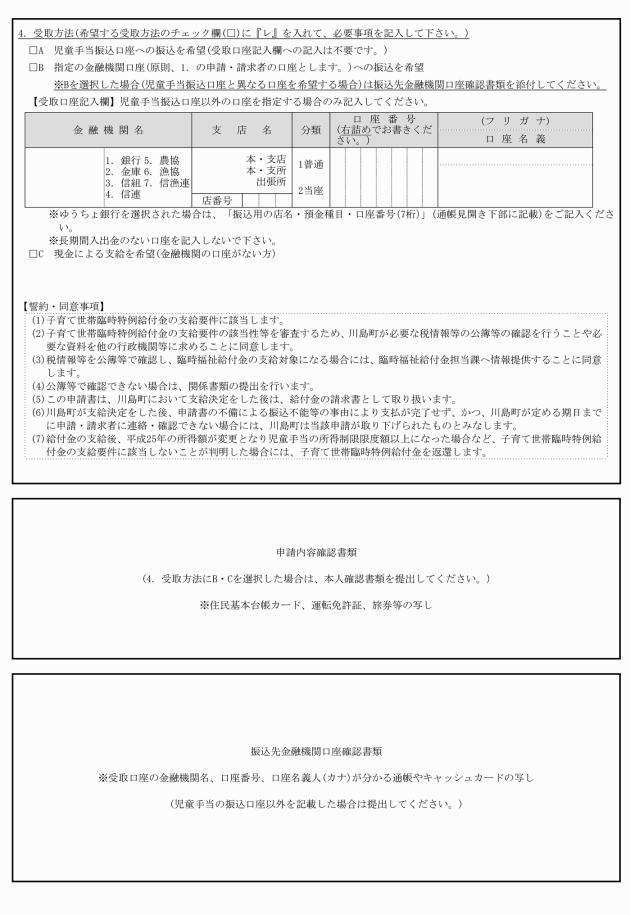 (3) 窓口現金受領方式 申請者が申請書を郵送により、又は町の窓口において町に提出し、町が当該窓口で現金を交付することにより支給する方式