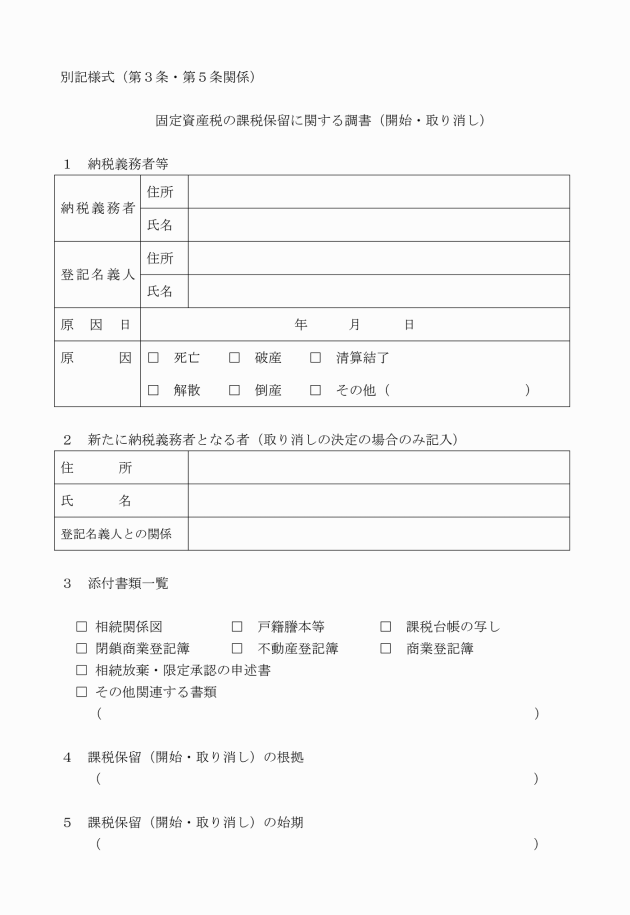 第5条 前条の規定により固定資産税の課税保留の決定をした課税保留対象者について、1年に1度、再調査するものとする。