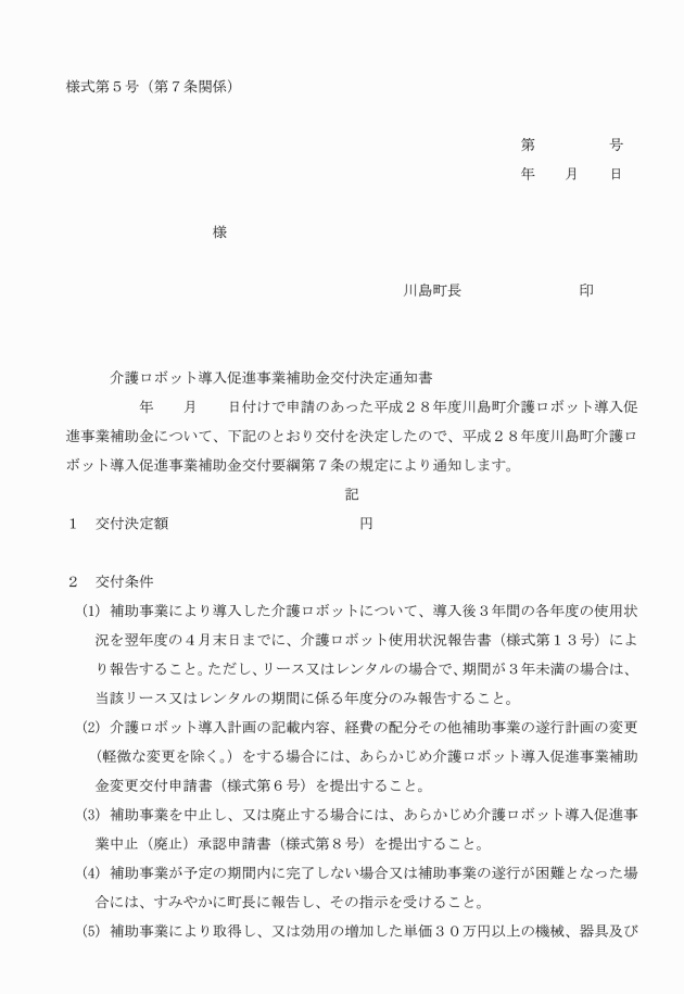 ○平成28年度川島町介護ロボット導入促進事業補助金交付要綱