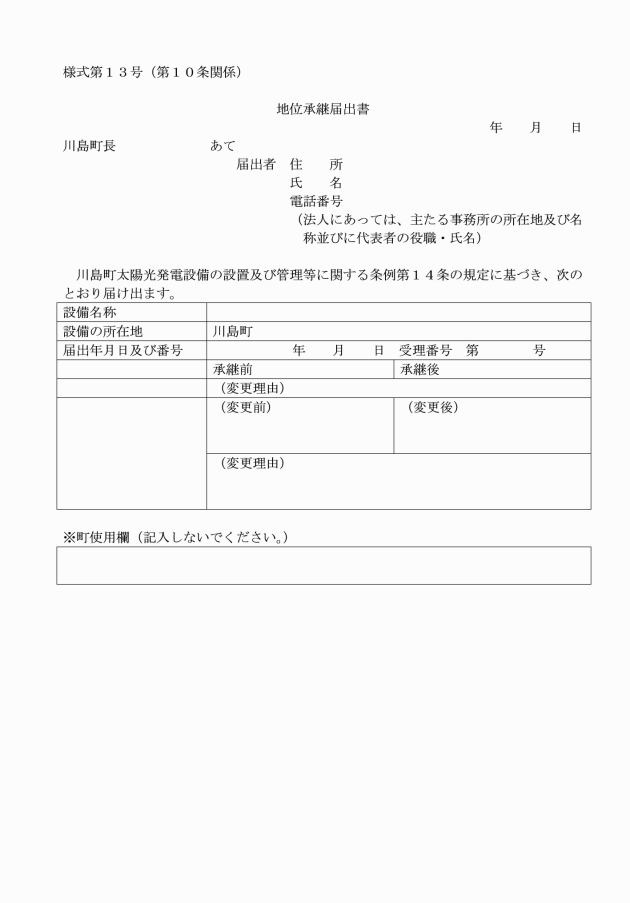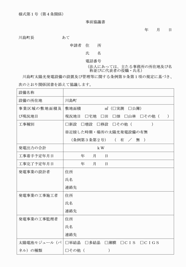○川島町太陽光発電設備の設置及び管理等に関する条例施行規則